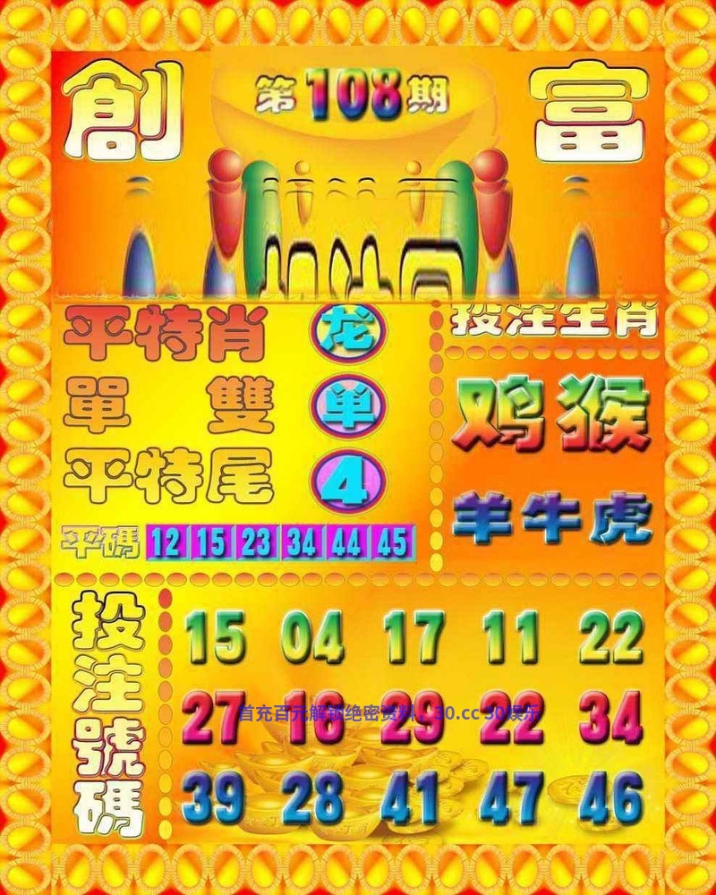 108期:【创富投注图】敢买就一定会赢成功的起始点!